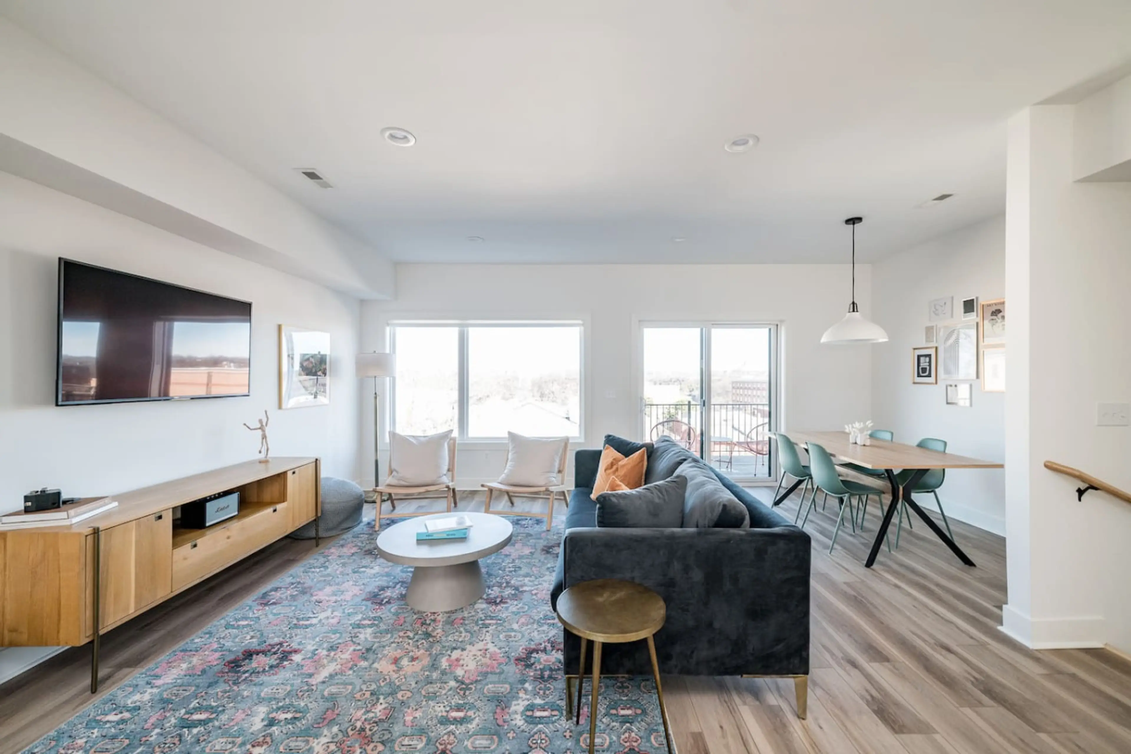 Sophisticated + bright modern townhome w/ luxurious touches in downtown Lynchburg. -Fast wifi, Nespresso machine, Aveda bath products & Puffy mattress! -2-4 blocks to great dining, shopping, & Academy of the Arts -Safe, quiet, well-lit, private garage, stocked kitchen -10 min to Liberty U and conven...